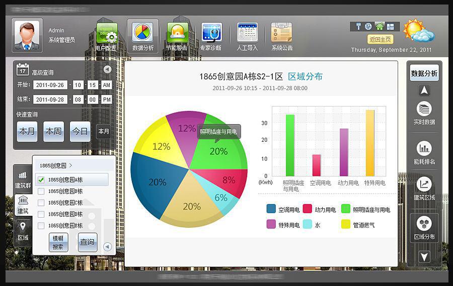 1、實現目的: 對建筑用能,包括電、水、氣的消耗計量及建筑、部門、單位面積、人均能效評測,以挖掘用能的優化空間,和對出租部分耗能的計費。 2、管理對象: 建筑設備設施的空調耗電、制冷制熱量、照明耗電、動力耗電、特殊耗電、水耗、氣耗等。 3、實現功能: 通過采集獲取各對象的工況信息,耗能數據等實現相關功能。 4、實現措施: 通過計量儀器與能耗監控系統相結合。 |