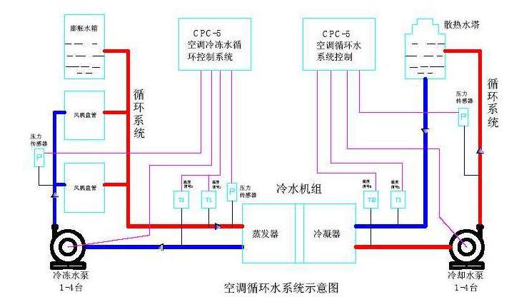 由裝于冷凍機房內的網絡控制器及數字式控制器,來控制冷水機組臺數的啟停及各設備的連鎖啟停。 1、測量冷凍水供、回水溫度及回水流量,從而計算空調實際的冷負荷。 2、根據實際的冷負荷來決定冷水機組開啟臺數,使達到最佳節能狀態。 3、應用自主研發的向量化分析技術、智能整定變頻技術,使系統水泵等設備根據系統負荷的變化來調整水泵的輸出流量。 4、各設備的程序聯動開/停: 5、測量冷凍水系統供回水總管的壓差控制其旁通閥的開度,使維持壓差。 |